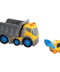 31 cm grote KiddyGo dump truck van stevig kunststof, met een kleine bulldozer als extraatje. De dumptruck heeft stoere licht- en geluidseffecten waar kinderen door geboeid zullen zijn. Ontwikkelt de motoriek, zintuigen en creativiteit van jonge kinderen. Geschikt voor kinderen vanaf 18 maanden.
