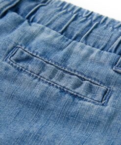 Deze kinderbroek heeft wijde pijpen, een elastische tailleband en 2 zakken aan de voorkant. De kinderbroek is denimblauw, wat modieus is en bij elke andere kleur kleding past. De kinderbroek met wijde pijpen is gemaakt van 100% katoen, waardoor hij comfortabel, ademend en duurzaam is.