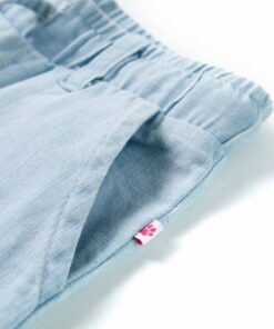 Deze kinderbroek heeft wijde pijpen, een elastische tailleband en 2 zakken aan de voorkant. De kinderbroek is zachtdenimblauw, wat modieus is en bij elke andere kleur kleding past. De kinderbroek met wijde pijpen is gemaakt van 100% katoen, waardoor hij comfortabel, ademend en duurzaam is.