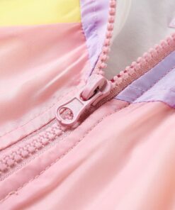 Deze kinderjas met capuchon heeft lange mouwen en 2 voorzakken en sluit met een ritssluiting. Deze kinderjas heeft elastische randen aan de manchetten en onderkant. De buitenkant van de jas met capuchon is gemaakt van 100% polyester, dat 70 gsm waterbestendig is. De voering is gemaakt van zacht materiaal met 95% katoen en 5% elastaan waardoor de jas comfortabel en ademend is.