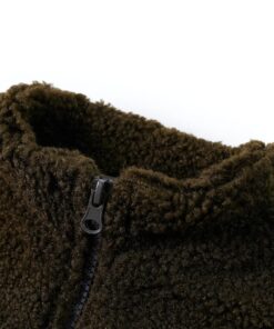Deze kinderjas heeft lange mouwen en een rechtopstaande kraag en sluit middels een ritssluiting. Het kinderjasje is in leuke patchwork kleuren uitgevoerd, waaronder kakikleurig, camelkleurig en zwart. De kinderjas is gemaakt van 100% polyester, waardoor hij warm en comfortabel is.