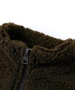 Deze kinderjas heeft lange mouwen en een rechtopstaande kraag en sluit middels een ritssluiting. Het kinderjasje is in leuke patchwork kleuren uitgevoerd, waaronder kakikleurig, camelkleurig en zwart. De kinderjas is gemaakt van 100% polyester, waardoor hij warm en comfortabel is.