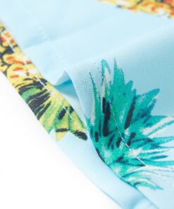 Deze kinderjurk heeft korte mouwen en een omgeslagen kraag en hij sluit met een rij knopen. Deze kinderjurk is met ananassen bedrukt. Het korte kinderjurkje is gemaakt van zacht materiaal met 50% polyester, 40% viscose en 10% katoen, waardoor het comfortabel en ademend is.