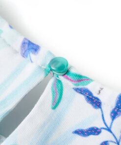 Dit kinderjurkje heeft een ronde halslijn, kapmouwen en een elastische tailleband met trekkoord en het sluit met een knoopje in de nek. Op deze kinderjurk zijn zebra’s, bloemen en bladeren afgebeeld. Het korte kinderjurkje is gemaakt van zacht materiaal met 94% katoen en 6% elastaan voor comfort en ademend vermogen.