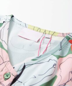 Deze kinderjurk heeft korte mouwen met ingenaaide omslagen en een tailleband met trekkoord en hij sluit met knopen aan de voorkant. Deze kinderjurk heeft een patroon van dieren. De korte kinderjurk is gemaakt van 100% polyester, waardoor hij comfortabel ademend is.