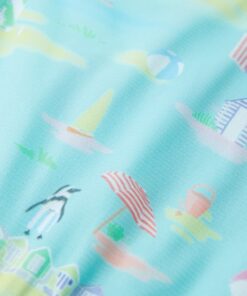 Deze kinderjurk heeft een ronde halslijn, kapmouwen en een elastische tailleband. Deze kinderjurk heeft een gaaslaag met een patroon van strandlandschappen. Het korte kinderjurkje is gemaakt van zacht materiaal met polyester, katoen en elastaan, waardoor het comfortabel en ademend is.