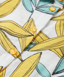 Deze kinderjurk heeft korte mouwen en een omgeslagen kraag en hij sluit met een rij knopen. Deze kinderjurk heeft een bloemenpatroon. Het korte kinderjurkje is gemaakt van zacht materiaal met 80% rayon en 20% nylon, waardoor het comfortabel en ademend is.