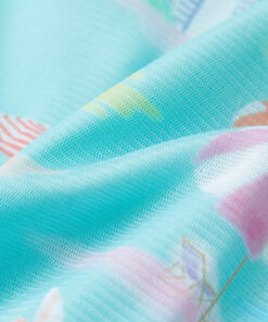Deze kinderjurk heeft een ronde halslijn, kapmouwen en een elastische tailleband. Deze kinderjurk heeft een gaaslaag met een patroon van strandlandschappen. Het korte kinderjurkje is gemaakt van zacht materiaal met polyester, katoen en elastaan, waardoor het comfortabel en ademend is.