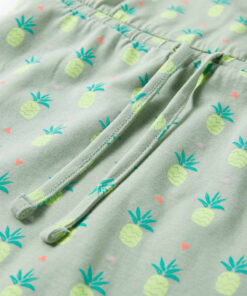 Deze kinderjurk heeft een ronde halslijn, een leuk patroon en een tailleband met trekkoord. Deze kinderjurk heeft een patroon van ananassen. De korte kinderjurk is gemaakt van zacht materiaal met 92% katoen en 8% elastaan, waardoor hij comfortabel en ademend is.