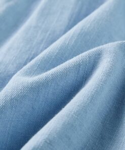 Dit kinderjurkje heeft korte mouwen en een ronde halslijn. Het sluit met een knoopje in de nek. Dit zachtblauwe kinderjurkje heeft mooie ruches die vanaf de voorkant langs de mouwinzet lopen. Het korte kinderjurkje is gemaakt van zacht materiaal met katoen, waardoor het comfortabel en ademend is.