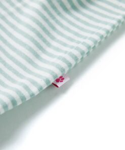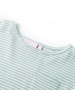 Deze kinderjurk heeft een ronde halslijn, mouwen met ruches en 1 zakje op de borst. Deze mintkleurig kinderjurk heeft een patroon van strepen. Het korte kinderjurkje is gemaakt van zacht materiaal met katoen en elastaan, waardoor het comfortabel en ademend is.