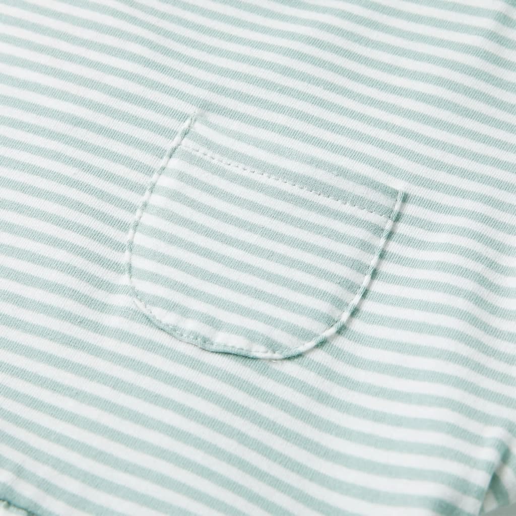 Deze kinderjurk heeft een ronde halslijn, mouwen met ruches en 1 zakje op de borst. Deze mintkleurig kinderjurk heeft een patroon van strepen. Het korte kinderjurkje is gemaakt van zacht materiaal met katoen en elastaan, waardoor het comfortabel en ademend is.