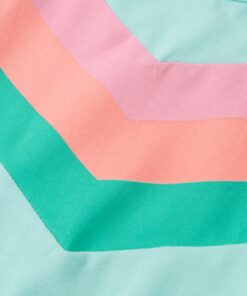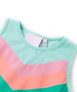 Deze mouwloze kinderjurk heeft een ronde halslijn, 2 zakken aan de voorkant en een elastische tailleband met een verstelbaar trekkoord. Deze lichtmintkleurige kinderjurk heeft gekleurde strepen op de borst staan. Het kinderjurkje is gemaakt van zacht materiaal met onder andere katoen en elastaan, waardoor het comfortabel en ademend is.