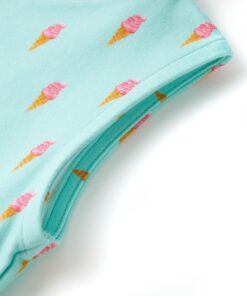 Deze kinderjurk heeft een ronde halslijn en een elastische tailleband met een trekkoord. Deze kinderjurk is met allemaal ijsjes bedrukt. Het korte kinderjurkje is gemaakt van zacht materiaal met 94% katoen en 6 % elastaan voor comfort en ademend vermogen.