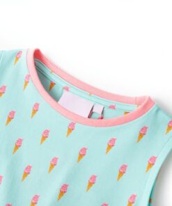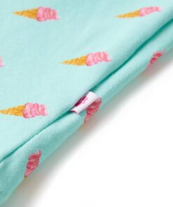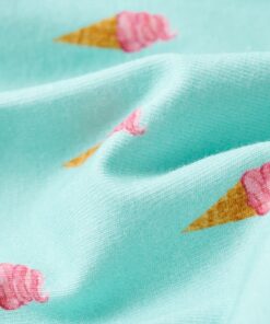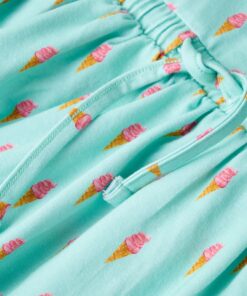 Deze kinderjurk heeft een ronde halslijn en een elastische tailleband met een trekkoord. Deze kinderjurk is met allemaal ijsjes bedrukt. Het korte kinderjurkje is gemaakt van zacht materiaal met 94% katoen en 6 % elastaan voor comfort en ademend vermogen.