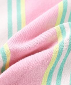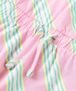 Deze kinderjurk heeft een tailleband met trekkoord en bandjes die over elkaar kruizen op de rug. Dit mouwloze kinderjurkje heeft diagonale strepen. Het korte kinderjurkje is gemaakt van zacht materiaal met 95% katoen en 5% elastaan, waardoor het comfortabel en ademend is.