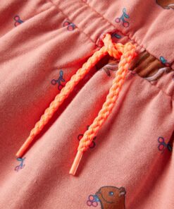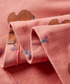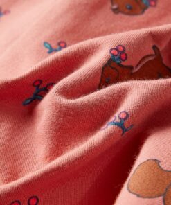 Deze kinderjurk heeft lange mouwen, een ronde halslijn en een trekkoord bij de taille. Op de meisjesjurk staan eekhoorns afgebeeld en hij heeft geribbelde randen bij de manchetten en halslijn. Het kinderjurkje is van zacht materiaal gemaakt met onder andere katoen en elastaan voor comfort en ademend vermogen.