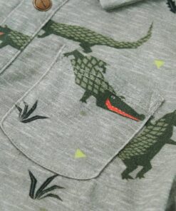 Dit kindershirt heeft korte mouwen, een puntkraag en een borstzak en hij sluit middels een rij knopen. Dit kindershirt heeft een leuk krokodillenpatroon. Dit kindershirt is gemaakt van 100% gekamd katoen, waardoor het comfortabel en ademend is.
