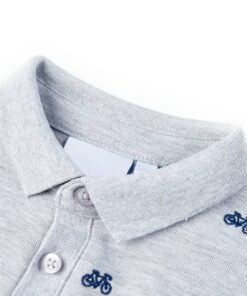 Dit kinderpoloshirt heeft korte mouwen, een knoopsluiting en een geribbelde kraag. Dit kinderpoloshirt heeft een patroon van fietsjes. Het poloshirt voor kinderen is gemaakt van 95% katoen en 5% viscose, waardoor het zacht en comfortabel aanvoelt.
