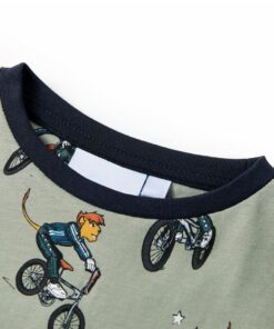 Deze kinderpyjama met korte mouwen heeft een ronde halslijn, een elastische tailleband en een normale pasvorm. Deze kinderpyjama heeft een patroon van dieren die op een fiets rijden. De kinderpyjama is gemaakt van zacht materiaal met 100% katoen, waardoor hij comfortabel en ademend is.