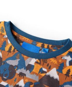 Deze kinderpyjama met lange mouwen heeft een ronde halslijn, een elastische tailleband en een normale pasvorm. De kinderpyjama heeft een print van bergen en dieren, zoals wolven, adelaars en beren. Deze kinderpyjama is gemaakt van 100% katoen, waardoor hij comfortabel en ademend is.