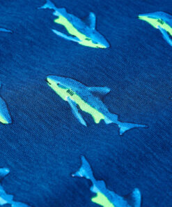 Dit kindershirt heeft korte mouwen, een ronde halslijn en een recht model. Dit kindershirt heeft een patroon van haaien. Het kindershirt met korte mouwen is gemaakt van 100% katoen, waardoor het zacht en comfortabel aanvoelt.