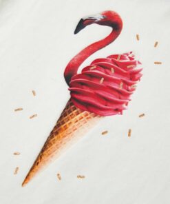 Dit kindershirt heeft korte mouwen met ruches, een ronde halslijn en een recht model. Op dit kindershirt staat een flamingo-ijsje afgebeeld, waardoor hij een blikvanger met een interessante uitstraling is. Het kindershirt met korte mouwen is gemaakt van 95% katoen en 5% elastaan, waardoor hij comfortabel en ademend is.
