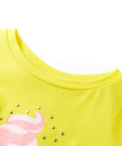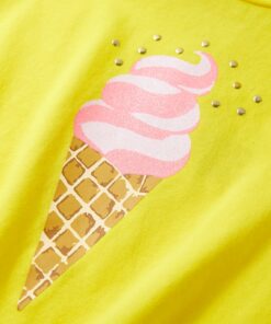 Dit kindershirt heeft korte mouwen, een ronde halslijn en een recht model. Op dit kindershirt staat een ijshoorntje afgebeeld Het kindershirt met korte mouwen is gemaakt van 95% katoen en 5% elastaan, waardoor het zacht en comfortabel aanvoelt.