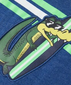 Dit kindershirt heeft korte mouwen, een ronde halslijn en een recht model. Op dit kindershirt staat een cartoonkrokodil met 3 gekleurde strepen op de borst afgebeeld. Het kindershirt met korte mouwen is gemaakt van 100% gekamd katoen dat met een silicone- en enzymwassing is behandeld, zodat het zacht en comfortabel aanvoelt.