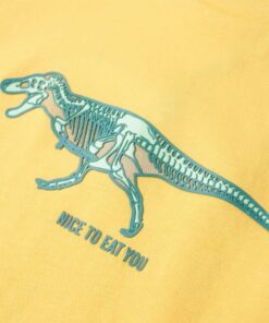 Dit kindershirt heeft korte mouwen, een ronde halslijn en een recht model. Dit kindershirt heeft een verhoogde rubberprint van een grote dinosaurus. Het kindershirt met korte mouwen is gemaakt van 100% katoen, waardoor het zacht en comfortabel aanvoelt.