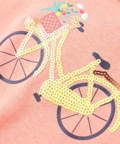 Dit kindershirt heeft korte mouwen, een ronde halslijn en een recht model. Op dit T-shirt staat een fiets op de borst afgebeeld, waardoor hij nog leuker en mooier is. Het kindershirt met korte mouwen is gemaakt van 95% katoen en 5% elastaan, waardoor het comfortabel en ademend is.