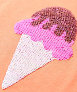 Dit kindershirt heeft korte mouwen, een ronde halslijn en een recht model. Dit shirt is voorzien van een omkeerbaar paillettenijsje, wat een vleugje magie aan de voorkant geeft. Het kindershirt met korte mouwen is gemaakt van zacht materiaal met katoen, polyester en elastaan, waardoor het comfortabel en ademend is.