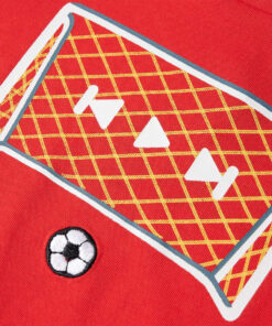 Dit kindershirt heeft korte mouwen, een ronde halslijn en een recht model. Op dit kindershirt staat een doel en een geborduurde voetbal afgebeeld. Het kindershirt met korte mouwen is gemaakt van 100% katoen, waardoor het zacht en comfortabel aanvoelt.