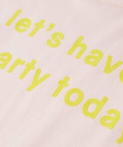 Dit kindershirt heeft korte mouwen, een ronde halslijn en een recht model. Op dit kindershirt staat de tekst ‘let’s have a party today’ afgebeeld. Het kindershirt met korte mouwen is gemaakt van 95% katoen en 5% elastaan, waardoor hij comfortabel en ademend is.