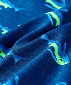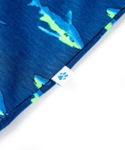 Dit kindershirt heeft korte mouwen, een ronde halslijn en een recht model. Dit kindershirt heeft een patroon van haaien. Het kindershirt met korte mouwen is gemaakt van 100% katoen, waardoor het zacht en comfortabel aanvoelt.