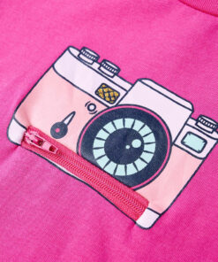 Dit kindershirt heeft korte mouwen, een ronde halslijn en een recht model. Dit kindershirt heeft op de voorkant een zakje en een afbeelding van een camera. Het kindershirt is gemaakt van katoen en elastaan, waardoor het zacht en comfortabel aanvoelt.