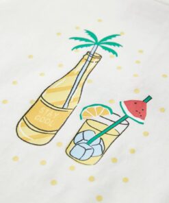 Dit kindershirt heeft korte mouwen, een ronde halslijn en een recht model. Op dit kindershirt staan op de voorkant drankjes afgebeeld. Het kindershirt is gemaakt van katoen en elastaan, waardoor het zacht en comfortabel aanvoelt.