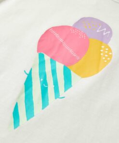 Dit kindershirt heeft korte mouwen, een ronde halslijn en een recht model. Dit kindershirt heeft een ontwerp met ruches aan de mouwen. Het kindershirt met korte mouwen is gemaakt van 100% katoen, waardoor het zacht en comfortabel aanvoelt.