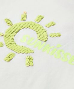 Dit kindershirt heeft korte mouwen, een ronde halslijn en een recht model. Het kindershirt is ontworpen met leuke prints op de voorkant. De print bestaat uit de zon en het woord “SUNKISSED”. Het T-shirt is gemaakt van 100% katoen, waardoor het zacht en comfortabel aanvoelt.