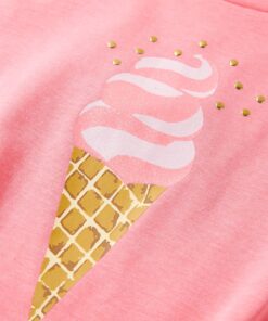 Dit kindershirt heeft korte mouwen, een ronde halslijn en een recht model. Op dit kindershirt staat een ijshoorntje afgebeeld Het kindershirt met korte mouwen is gemaakt van 57% katoen, 38% polyester en 5% elastaan, waardoor het zacht en comfortabel aanvoelt.