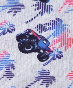 Dit kindershirt heeft korte mouwen, een ronde halslijn en een recht model. Op dit kindershirt staan allemaal monstertrucks en palmbomen afgebeeld. Het kindershirt met korte mouwen is gemaakt van 100% katoen, waardoor het zacht en comfortabel aanvoelt.
