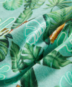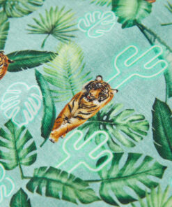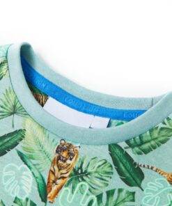Dit kindershirt heeft korte mouwen, een ronde halslijn en een recht model. Op dit kindershirt heeft een patroon van tijgers en planten. Het kindershirt met korte mouwen is gemaakt van 100% gekamd katoen dat met een silicone- en enzymwassing is behandeld, zodat het zacht en comfortabel aanvoelt.