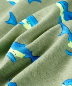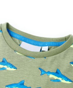 Dit kindershirt heeft korte mouwen, een ronde halslijn en een recht model. Dit kindershirt heeft een patroon van haaien. Het kindershirt met korte mouwen is gemaakt van 100% katoen, waardoor het zacht en comfortabel aanvoelt.