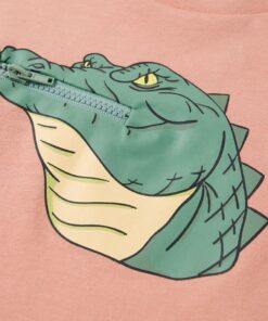 Dit kindershirt heeft korte mouwen, een ronde halslijn en een recht model. Op dit T-shirt staat een krokodil afgebeeld. Het kindershirt met korte mouwen is gemaakt van 100% katoen, waardoor het zacht en comfortabel aanvoelt.