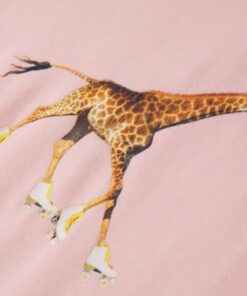Dit kindershirt heeft korte mouwen, een ronde halslijn en een recht model. Dit shirt heeft een giraf met rolschaatsen op de borst. Het kindershirt met korte mouwen is gemaakt van 95% katoen en 5% elastaan, waardoor het comfortabel en ademend is.