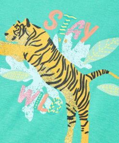 Dit kindershirt heeft korte mouwen, een ronde halslijn en een recht model. Op het kindershirt staat een tijger en de woorden ‘stay wild’ afgebeeld. Het kindershirt is gemaakt van katoen en elastaan, waardoor het zacht en comfortabel aanvoelt.