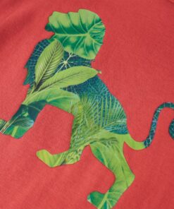 Dit kindershirt heeft korte mouwen, een ronde halslijn en een recht model. Op dit kindershirt staat een leeuw afgebeeld die van bladeren is gemaakt. Het T-shirt is gemaakt van 100% katoen, waardoor het zacht en comfortabel aanvoelt.