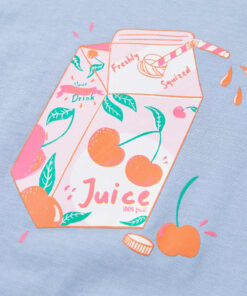 Dit kindershirt heeft korte mouwen, een ronde halslijn en een recht model. Op dit kindershirt staat een pakje sap met een kersenprint afgebeeld. Het kindershirt met korte mouwen is gemaakt van 100% katoen, waardoor het zacht en comfortabel aanvoelt.