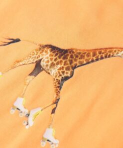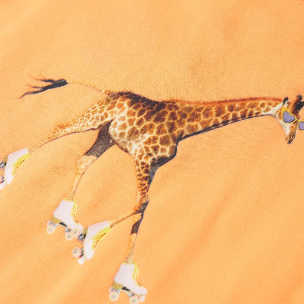 Dit kindershirt heeft korte mouwen, een ronde halslijn en een recht model. Dit shirt heeft een giraf met rolschaatsen op de borst. Het kindershirt met korte mouwen is gemaakt van 95% katoen en 5% elastaan, waardoor het comfortabel en ademend is.