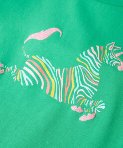 Dit kindershirt heeft korte mouwen, een ronde halslijn en een recht model. Op dit groene T-shirt staat een kleurrijke eenhoorn afgebeeld. Het kindershirt met korte mouwen is gemaakt van 95% katoen en 5% elastaan, waardoor hij comfortabel en ademend is.